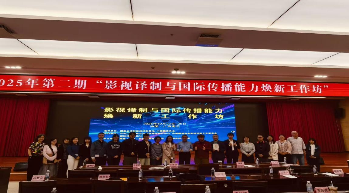 为深入贯彻落实习近平文化思想,推动国际传播能力建设,2025年10月23日至25日,由中央广播电视总台影视翻译制作中心、中国翻译协会影视译制专业委员会和国际视频通讯社联合主办的第二期“影视译制与国际传播能力焕新工作坊”在广西南宁成功举办。我院教师龚艳、王萌参加了此次工作坊。