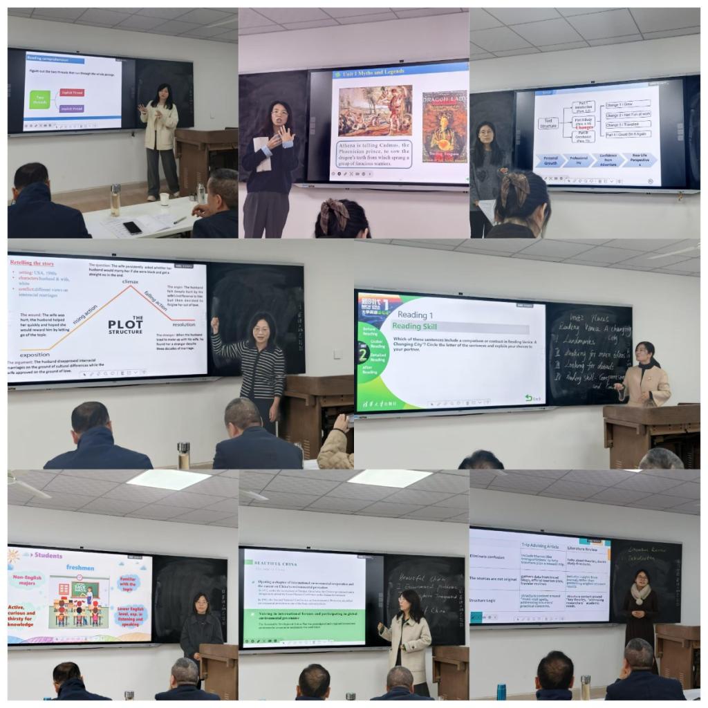 参赛教师们准备充分,讲授内容充实,展示出较高的专业素养与教学热情。多位教师的PPT制作生动详实,图文并茂,能有效辅助教学内容的呈现;课堂组织环节清晰,活动设计灵活多样,充分体现了语言类课程的互动性与开放性。评委们一致认为,本次比赛整体水平较高,多数教师讲解思路清晰、语言流畅、表达自然,能自如运用多媒体和网络资源,教学手段现代化、感染力强。教师们普遍具有良好的英语口语表达能力和课堂亲和力,能够通过提问、讨论、任务驱动等方式引导学生积极参与,使课堂氛围生动活跃。教师还巧妙地将思政元素融入教学内容之中,将语言学习与价值引领相结合,使课堂既具知识深度,又富人文温度,展现了外语教师以文化人、以德育人的教育担当。