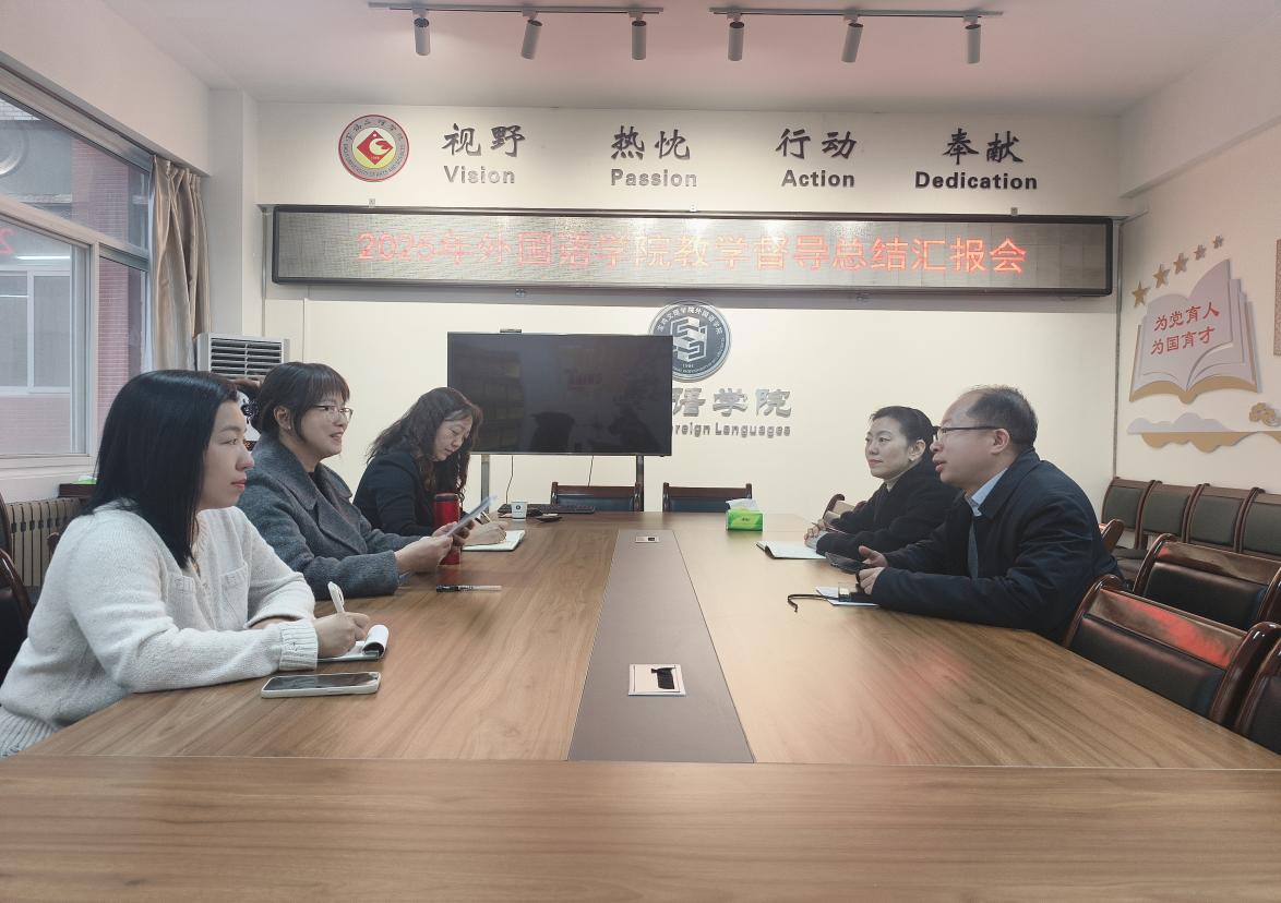 为全面总结2025年度教学督导工作成效,精准规划下一年度督导工作重点,外国语学院近日组织召开了年度教学督导工作总结会。外国语学院院长李伟、教学副院长冯琳及三名教学督导参会,会议由教学督导组副组长王烈琴教授主持。