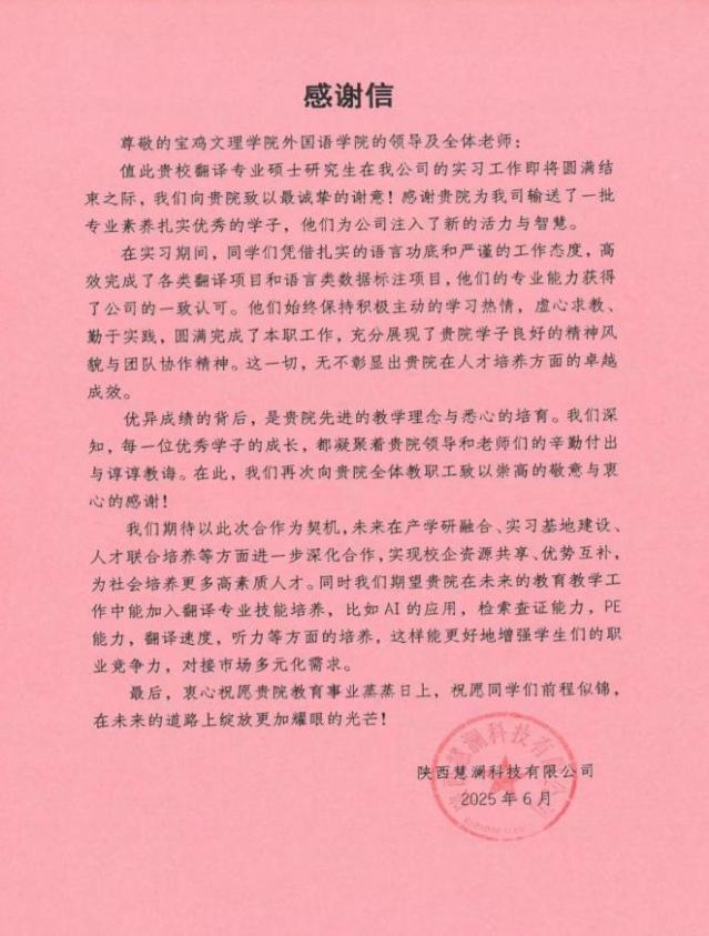 坚持以服务地方为己任,多维度推动校地、校企合作。3月赴杨凌示范区开展政产学研协同发展调研,精准对接地方需求;9月选拔35名外语专业学子参与中国(宝鸡)国际羽毛球大师赛志愿服务,以专业素养保障赛事顺利举办;10月为中国(宝鸡)酒业展览会提供多语种翻译服务,助力中外嘉宾沟通对接,俄语教师史云燕还为宝鸡市中医院与哈萨克斯坦阿斯塔纳医科大学战略对话会提供同声传译;12月与陕西睿道合文商旅有限公司联合申报的陕西文旅多语国际传播智能实验教学中心,获批校级与行业企业共建实验教学中心,实现实践教学与产业需求精准对接,为宝鸡及陕西经济社会发展贡献外语力量。