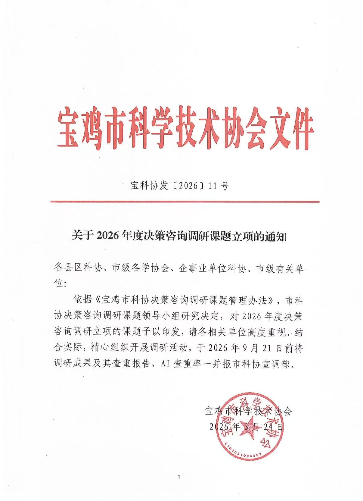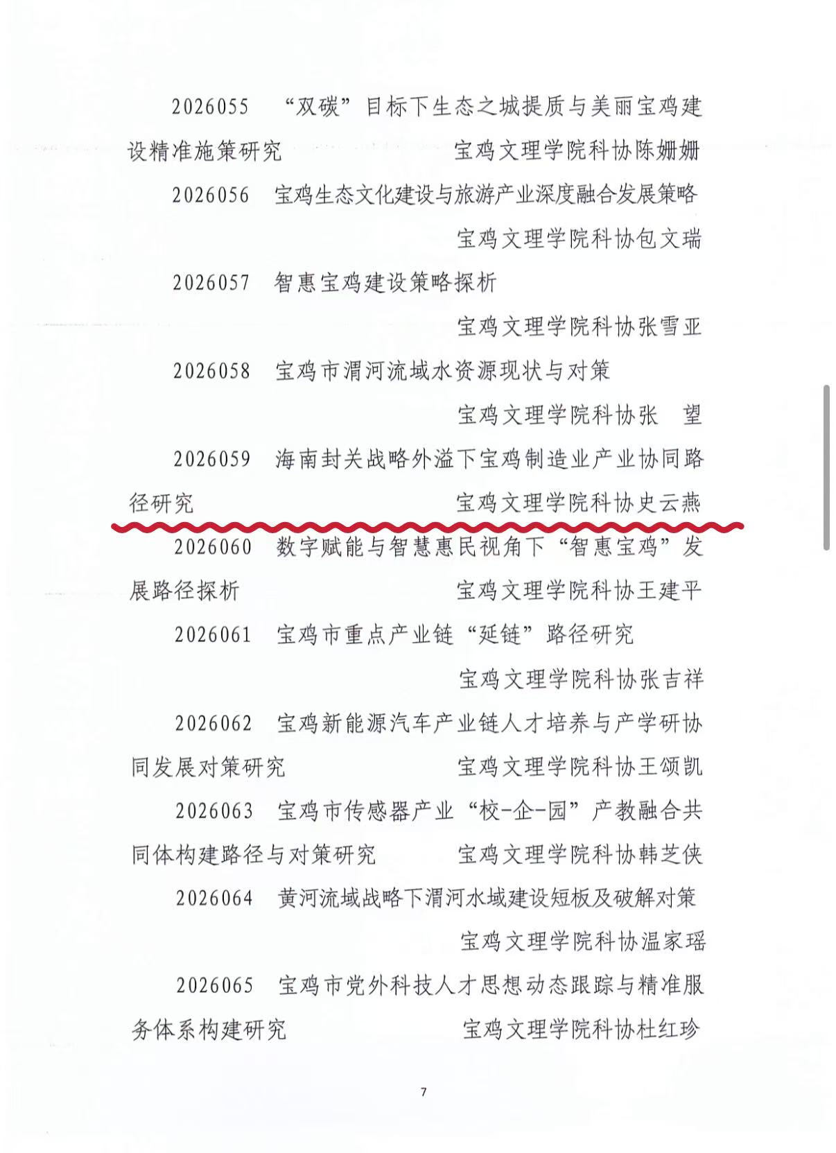 近日,宝鸡市科学技术协会公布了2026年度决策咨询调研课题立项名单,全市共立项125项,我校获批16项,其中我院获批1项。我院史云燕老师获批2026年度宝鸡市科学技术协会决策咨询课题项目。(外国语学院文/李丹审核/李伟)
