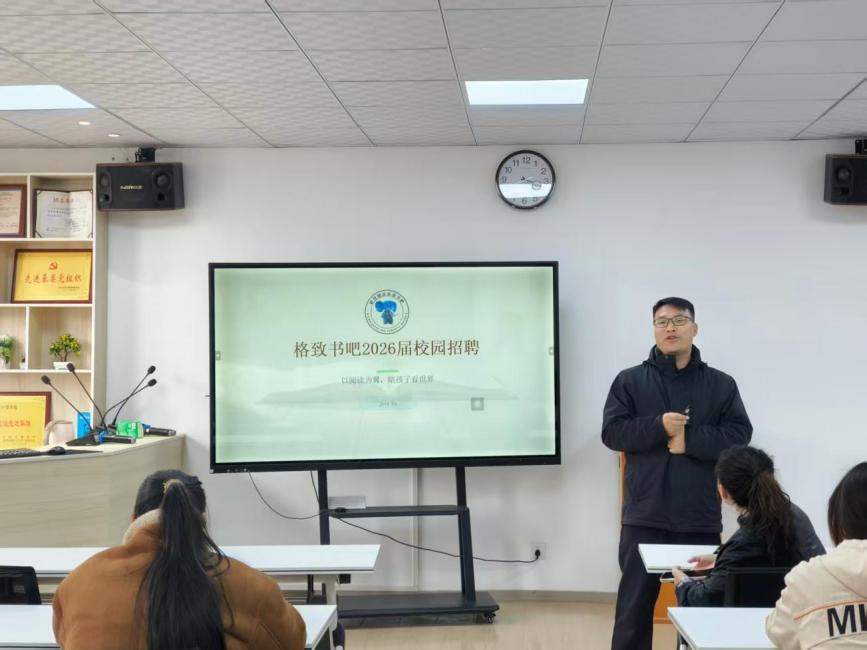 西安格致图书阅读有限公司招聘负责人刘老师,详细介绍了公司发展历程与少儿英语办学特色,解读了企业的核心价值观,重点讲解了英语教师岗位要求、阶梯式薪资体系、完整职业晋升通道与合伙人发展模式,并以真诚务实的态度提醒同学们端正求职心态,摒弃浮躁,理性选择职业方向,做对自身选择负责的成年人。随后,优秀校友赵老师结合自身深耕师范教育行业的经历,分享了师范教育行业的发展优势并逐一解答了同学们关心的岗位分配等问题。