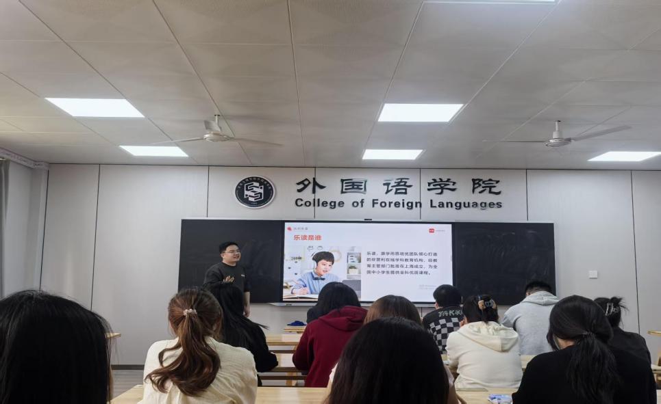 为扎实推进毕业生就业工作,搭建校企精准对接平台,助力学子高质量就业,4月16日下午,外国语学院在立心楼405教室举办乐读教育 2026 届毕业生专场招聘宣讲会。乐读教育招聘负责人靳岩主讲,学院2026届毕业生踊跃参会。